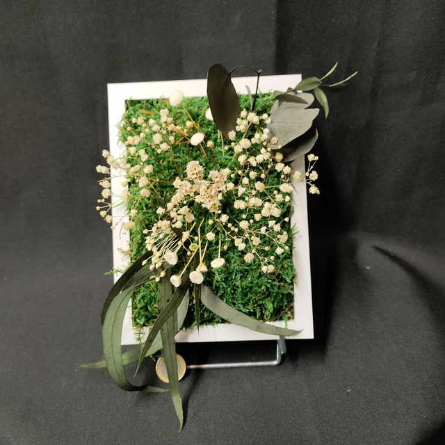 Cadre en végétal stabilisé. Dimension totale 19.5X14.5 cm Orientation: verticale. Cadre à crocher. Les végétaux éternels ou stabilisés ne nécessitent aucun entretien, ni arrosage! La stabilisation consiste à remplacer la sève naturelle de la plante par un produit de conservation, ainsi chaque plante va garder sa fraicheur et sa splendeur naturelle sans avoir besoin d'eau. Chaque création durera minimum 5 ans sans entretien. Toutefois ne pas exposer en plein soleil, ni dans une pièce humide et loin des sources de chaleur. Uniquement pour la décoration d'intérieur.